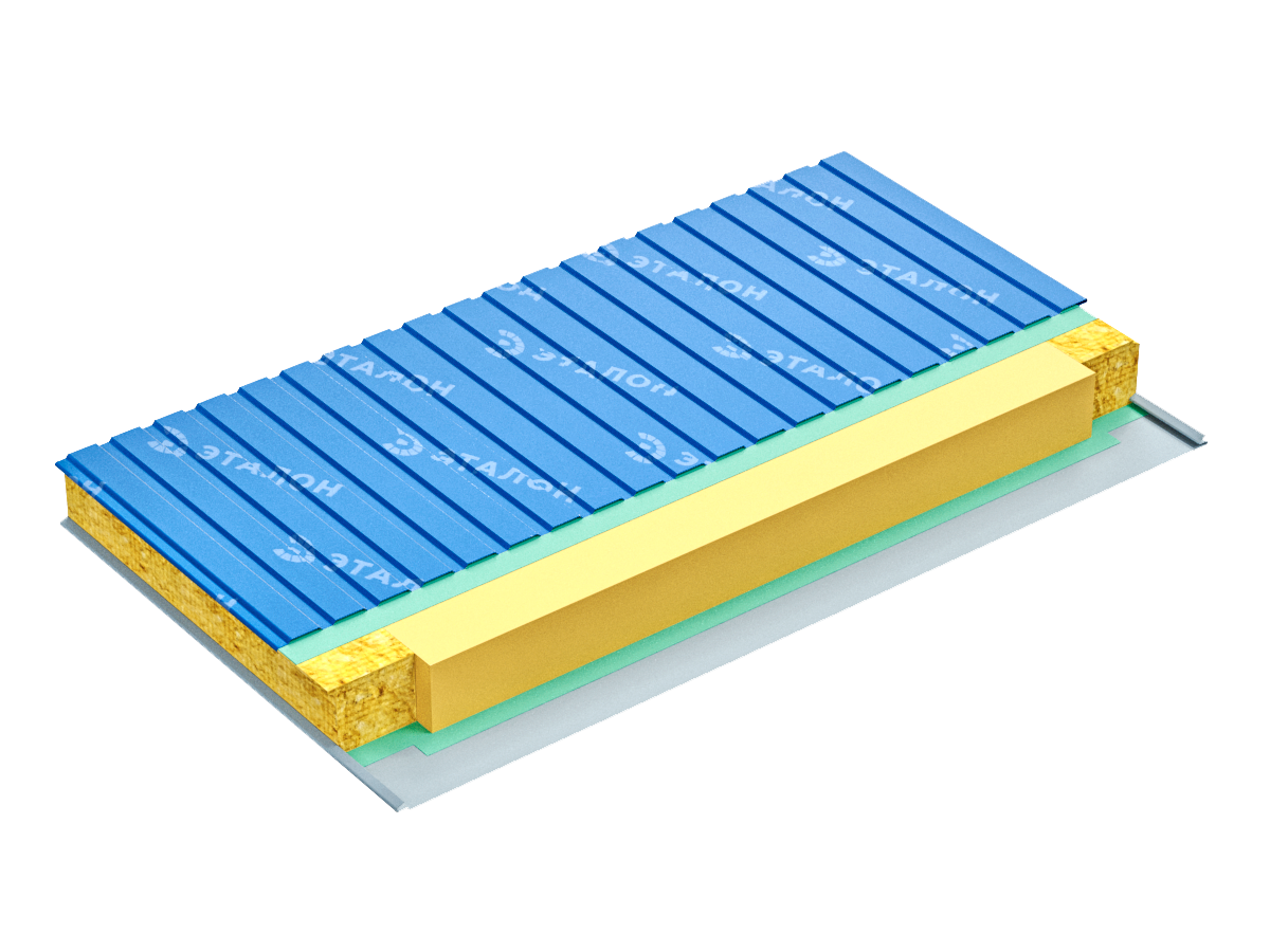 Комбинированные сэндвич-панели — это трехслойные строительные конструкции, сердечник которых состоит из минеральной ваты и пенополистирола, а облицовка выполнена из двух стальных оцинкованных листов с полимерным покрытием. Слои панели связаны между собой слоем двухкомпонентного клея на полиуретановой основе.